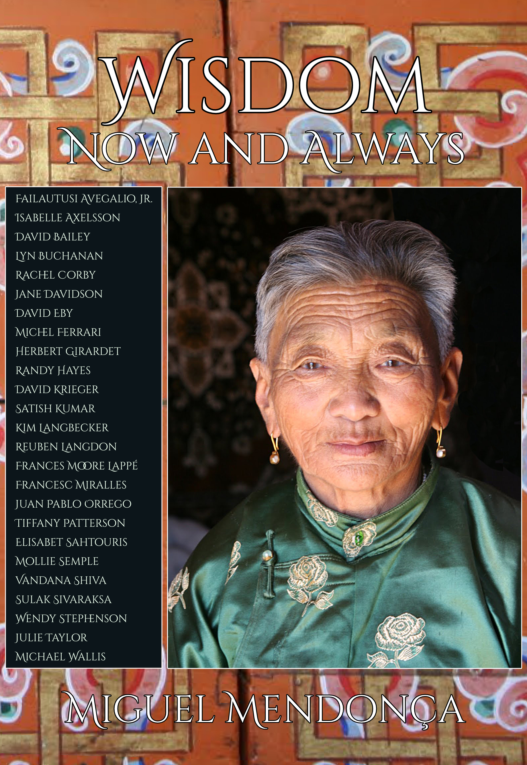 The 25 contributors are: Failautusi Avegalio Jr., Isabelle Axelsson, David Bailey, Lyn Buchanan, Rachel Corby, Jane Davidson, David Eby, Michel Ferrari, Herbert Girardet, Randy Hayes, David Krieger, Satish Kumar, Kim Langbecker, Reuben Langdon, Frances Moore Lappe, Francesc Miralles, Juan Pablo Orrego, Tiffany Patterson, Elisabet Sahtouris, Mollie Semple, Vandana Shiva, Sulak Sivaraksa, Wendy Stephenson, Julie Taylor and Mike Wallis. They have more than 1,500 years of collective life experience, across three generations. They represent a wide range of professional backgrounds, including education, governance, the military, science, industry, the arts, journalism, activism and nonprofit, religion and spirituality. Between them they have traveled to most of the countries of the world. They come from 11 nations, on five continents, and speak at least 10 languages. They have produced around 200 books, which have sold millions of copies. Their careers have benefited countless people. I feel incredibly grateful to have brought them together for this project, and it has been a hugely life-affirming experience. I believe we have collectively moved toward a solid sense of wisdom, and its shared benefit, now and always. My greatest wish is that this book will help the reader recognize, cultivate and share their own wisdom.