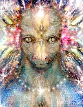 This is my higher self as she came through to me. As the years went by I saw more beings of light that were connected to me, to others in my family and those I worked for. One day a sweet acquaintance called me out of the blue and said she went on a vision quest. In that quest a light being came to her and told her to tell me they are watching me. This was a pivotal point in my life. At the time I was illustrating a project about light beings ufo contactees had seen. The verification of being watched and guided confirmed to me that I was not imagining these visions of meditation.